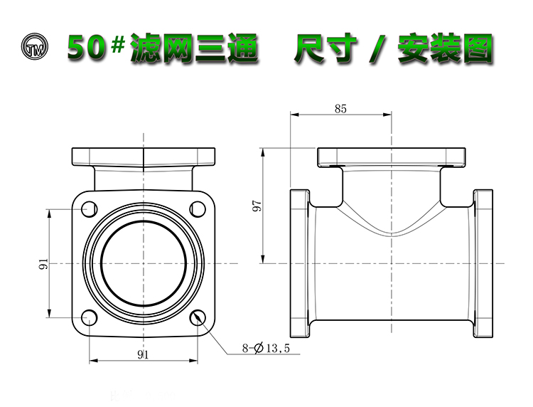 50濾網(wǎng)三通過濾器(鋁合金)