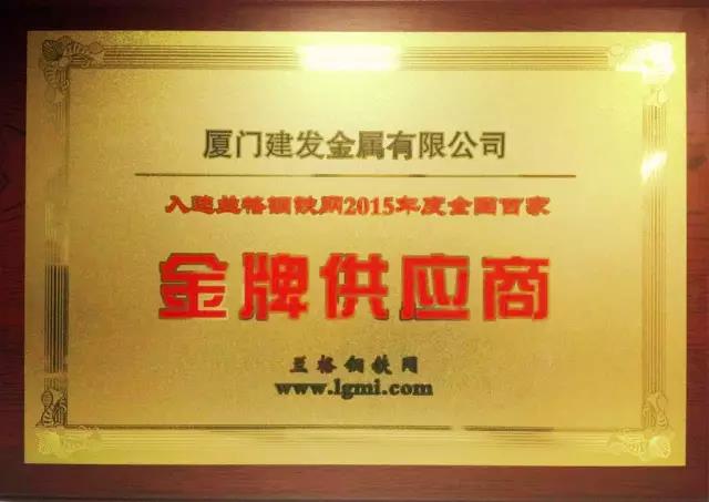 在蘭格鋼鐵網(wǎng)的主持下,經(jīng)過數(shù)輪謹(jǐn)慎、公正評選,"蘭格鋼鐵網(wǎng)金牌供應(yīng)商TOP100"評選結(jié)果終于塵埃落定。建發(fā)金屬公司憑借專業(yè)服務(wù)、守信經(jīng)營,獲評蘭格金牌供應(yīng)商TOP100,并受頒牌匾和證書,這已是建發(fā)金屬公司連續(xù)第二次入選該榜單。此次入選的企業(yè)都是具有一定規(guī)模和實力,供應(yīng)正品材,價格實惠,準(zhǔn)斤足量、服務(wù)到位的企業(yè),具備較高的行業(yè)權(quán)威性和認(rèn)可度。